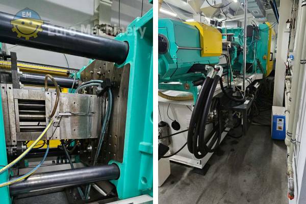 Injection moulding machine with a 300-ton clamping force and a 70 mm screw diameter. The machine has 45.531 working hours, is offered “as is” and available for dry-cycle inspection. Brand & Model: Arburg Allrounder 720 S 300-1300- Clamping force: 300T