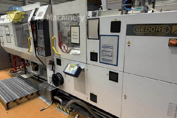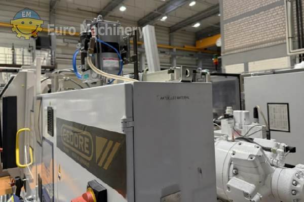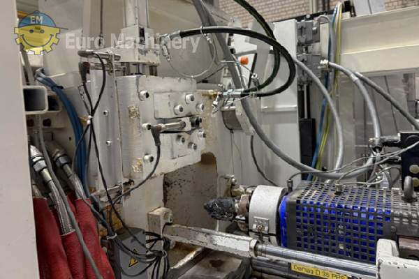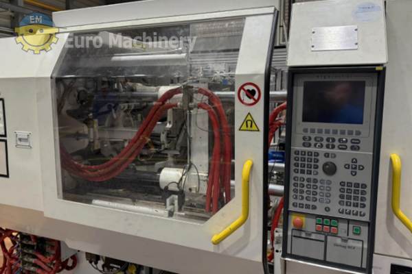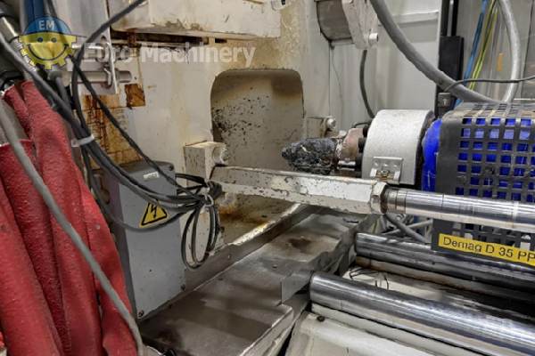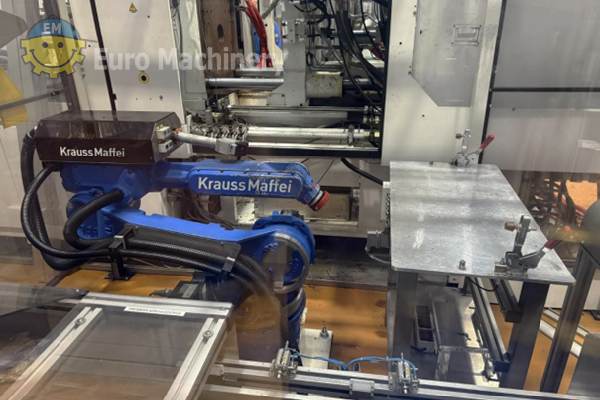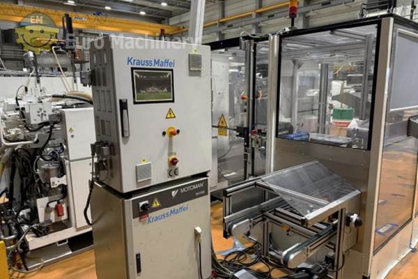 DEMAG Ergotech Injection moulding machine is a hydraulic injection molding machine to produce medium-size plastic parts by injecting molten plastic into molds. Brand & Model: Demag Ergotech 150 500-440 Description: Complete injection moulding system with robotic automation, consisting of a Demag injection molding machine, 6-axis handling robot, CO₂ laser marking system, protective enclosure and conveyor technology. The system was used until recently in industrial plastic parts production. Clamping force: 1,500 kN (150 t) Screw diameter: 35 mm Control system: Demag Ergocontrol NC4 Hydraulic pressure: 190 bar Oil volume: approx. 126 l Power supply: 3 × 400 V / 50 Hz Industrial Robot:- KraussMaffei / Yaskawa Motoman
