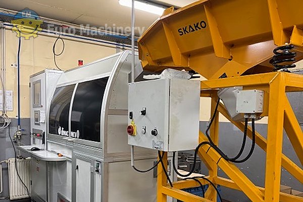 Dimac MCV0 is a professional optical sorting machine with automatic rotary table for 100% inspection of fasteners M2-M4. Features dual CCD camera stations with telecentric optics and 360° all-around inspection capability, equipped with stainless steel bowl feeder and Allen & Bradley PLC controller.