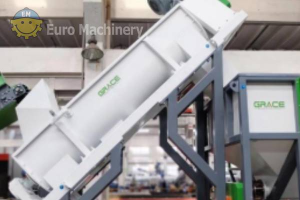GRACE PE Rigid material washing line to process small PE bottles and big blow moulding PE plastic compose of de-baler with platform, conveyot belt, friction washer, floating washer and heating pipe. Brand & Model: GRACE / PLASTIC EXTRUSION RIGID MATERIAL CLEANING LINE Material that can be processed: PE rigid material (small PE bottles and big blow moulding PE plastic) Note: Big blow moulding PE must be shredded before entering the washing line Output:- Input Capacity: 2000 kg/h