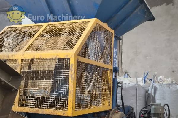 Palbase One shaft shredder with pusher to process plastic, paper and board, fiber, electric cables and so on. The rotor 1000 mm x 250mm is equipped with 40 blades, able to grinder 600 kg/h. Brand & Model: Palbase DS 25.100 Type: One shaft with pusher Rotor: 1000 mm x diam. 250 mm Cutter house: 40 blades Motor type and size: 30 kW Screen size: 50 mm hole Output: 600 kg/h depending on the type of material, blower and feeding rate. Hopper inlet: 2000 mm X 2000 mm Material that can be processed:- Plastic,