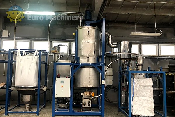The complete system includes a main processing tank, dedicated control cabinet for operation management, two loading stations for material input, and one discharge station for finished product removal. The integrated dust extraction and filtration system ensures clean operation and environmental compliance. A comprehensive set of pipes for conveying raw material and air is included, allowing for seamless integration into existing production lines. This machine is sold as-is and is currently dismantled but intact with all original components. The system specifications are based on manufacturer data and previous owner information, providing confidence in the equipment’s capabilities and performance history.- I would like to know the price of this machine