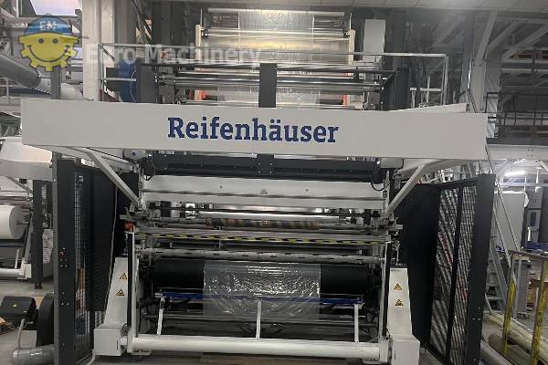 Reifenhauser Evo blown film co-extruder line is a 3 layers coextruder which produce plastic films for packaging films, trash bag, industrial packaging materials. Brand & Model: REIFENHAUSER EVO OS Materials to be processed: LLDPE / LDPE / LLD / HDPE / PP / Borstar / Metallocene / Borcene / other blends. Extruders: 80 mm + 105 mm + 80 mm Head:- 3-Layer blown film Die head