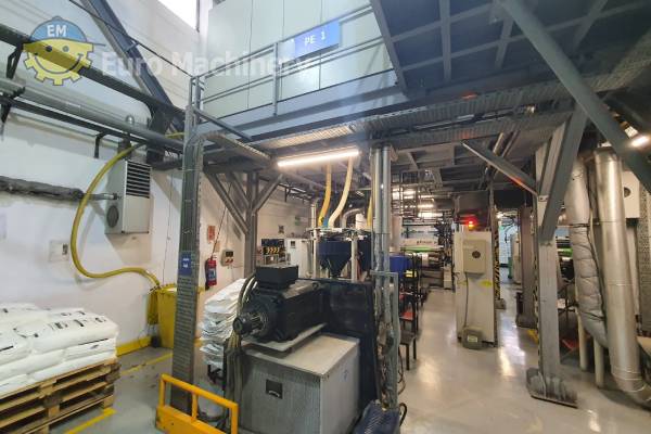 Reifenhäuser Kirion Monolayer extrusion line able to process PE. Mono layer extruder equipped with a screw diameter 100 mm and a take off 1600 mm wide. Type: REIFENHÄUSER KIRION Materials to be processed: PE Type: Mono Layer Extruder Screw Diameter: 100 mm Take off:- Take off 1600 mm wide