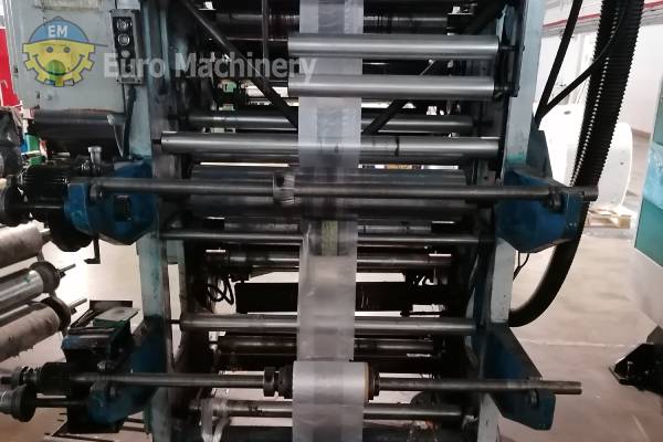 Remak Stand-alone Stack Flexo printer able to print PE, PP, OPP, PET, ALU, PVC and paper in 2 colors, printing width 800 mm and print repeat from 320mm to 600 mm. Off-line stack printing press with electrical drying Brand & Model: Remak No. of colours: 2 colours Material to print: PE, PP, OPP, PET, Paper, ALU, PVC, Printing width: 800 mm Material width: 800 mm Print repeat: 320 mm – 600 mm Mechanical speed: Up to 130 m/min Unwinder and winder:- Winder: Standard winder