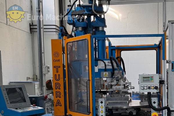 TURRA FTV 30/20 Vertical injection moulding machine for general purpose thermoplastics. Injection molding machine with screw diameter 22 mm, clamping force 180 kN. Brand & Model: TURRA FTV 30/20 5th series Material: PP, PS, ABS, PA (general purpose thermoplastics) Screw diameter: 22 mm Clamping force: 18 tons (180 kN) Platen Size- (H): 200 mm