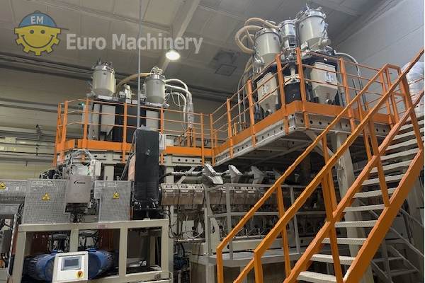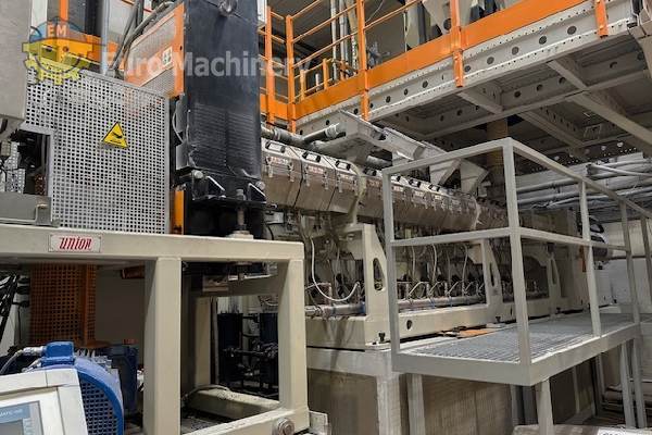 Union R-PET Sheet Co-extrusion line for the production of R-PET Sheet. Twin screw extruder to process rPET, able to produce sheet width 800 mm to 1100 mm. Brand & Model: Union Sheet width: Useful width range: 800 ÷ 1100 mm Materials to be processed: rPET Material thickness: 0.12 to 1.2 mm Production: 600 kg/h ±10% Extruders:- Twin screw extruders ZP 71/52D and 42/48D