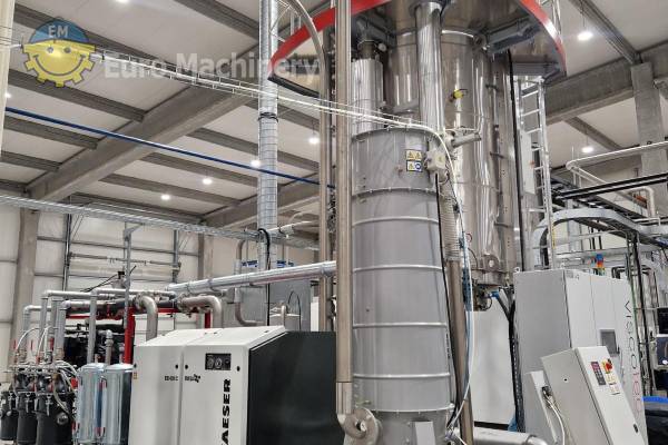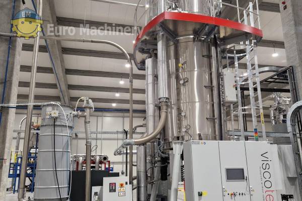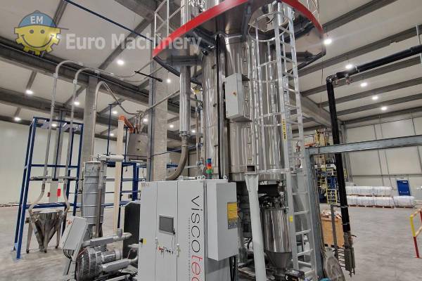 PET flakes decontamination and drying from VISCOTEC for PET recycling. Recycling equipment able to process PET PCR bottles flakes. Brand & Model: VISCOTEC DYNAVAC deCON50 Material that can be processed: PET PCR bottle flakes Areas of application: PET recycling Method of operation: PET flakes are preheated and fed under vacuum into the reactor vessels. With the DYNAVAC system, the boiling temperatures of the inherent water and contaminants are substantially lowered, which leads to an excellent drying and decontamination performance at lower temperatures and time than usually required. The especial designed outlet of the deCON50 leads to a real First In First Out of each single flake, guaranteeing a continuous treatment before the flakes leave the reactor via a vacuum sluice to the next process step Benefits:- Decontamination of PCR flackes according to EFSA and FDA