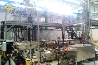We often have extruders in our portfolio that can produce PE (polyethylene) film, PP (polypropylene) film, PVC (polyvinyl chloride) film, PS (polystyrene) film, PET (polyester) film, or polyamide–nylon film.